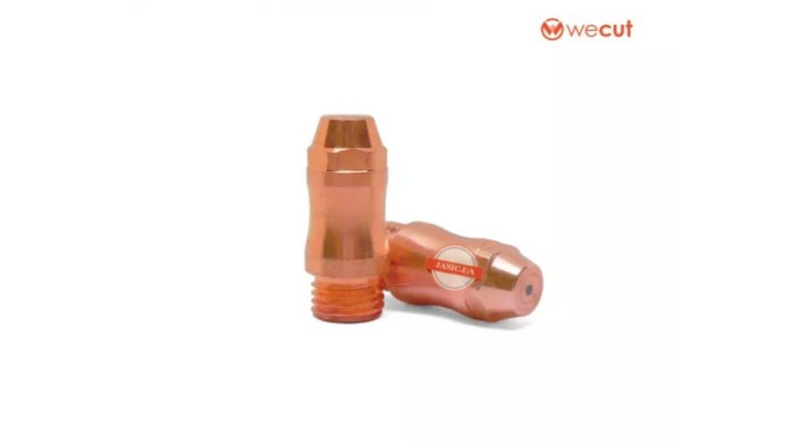 Электрод (катод) к плазмотрону - это расходный компонент, который заменяют по мере выработки ресурса. Изготовлен электрод из медного сплава, внутри находится вставка из гафния. По степени выгорания вставки судят о необходимости замены электрода. Если вставка выгорела на 1.5 мм - медный электрод заменяется, при использовании электродов на основе серебра возможна работа при износе до 2 мм. Рекомендуется заменять электрод через 20-40 метров резки и в комплекте с соплом. Конечно, нужно учитывать износ и можно заменить только сопло или только электрод, но изношенный расходник в случае аварийного выхода из строя повредит новый и под замену уйдут оба.