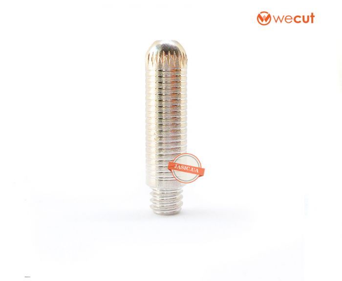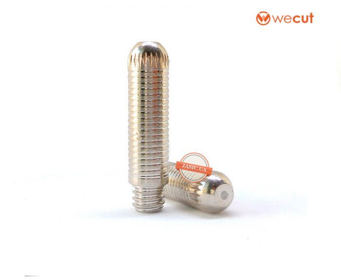 Электрод (катод) к плазмотрону - это расходный компонент, который заменяют по мере выработки ресурса. Изготовлен электрод из медного сплава, внутри находится вставка из гафния. По степени выгорания вставки судят о необходимости замены электрода. Если вставка выгорела на 1.5 мм - медный электрод заменяется, при использовании электродов на основе серебра возможна работа при износе до 2 мм. Рекомендуется заменять электрод через 20-40 метров резки и в комплекте с соплом. Конечно, нужно учитывать износ и можно заменить только сопло или только электрод, но изношенный расходник в случае аварийного выхода из строя повредит новый и под замену уйдут оба.