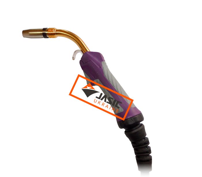 PRO-2400 - классическая горелка для полуавтоматической (MIG/MAG) сварки в среде защитного газа. Она отличается небольшими размерами и удобна в использовании. Рукоятка в эргономическом исполнении фиолетово-серого цвета, подача газа и проволоки управляется встроенной кнопкой. Для большего удобства в использовании шланг-пакет присоединяется к рукоятке не напрямую, а при помощи шарового шарнира, что значительно облегчает манипуляции с горелкой. По сравнению с младшей горелкой этой же серии PRO-2400 отличается габаритами и предназначена для работы с более высокими токами. Это уже не бытовая горелка, а инструмент для небольшого производства. Охлаждение горелки - воздушное, а это значит, что нет необходимости для сварочных работ покупать дополнительно блок жидкостного охлаждения.