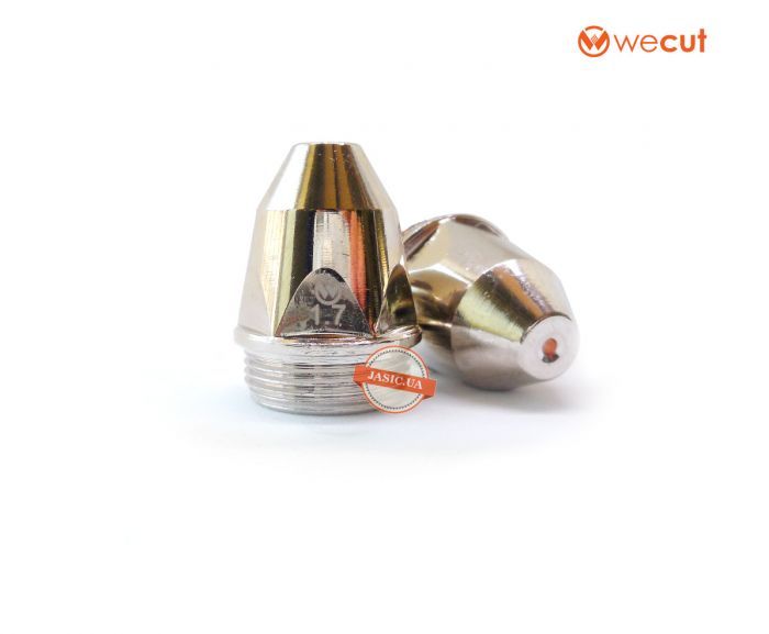 Сопло к плазмотрону - это расходный компонент, который по мере износа заменяется. Изготавливают сопла методом холодной штамповки из медного сплава или из комбинации меди и керамического наполнителя. Подбирают сопло в зависимости от тока резки, визуально за это отвечает диаметр выходного отверстия, чем больше ток резки – тем больше диаметр. Правильный диаметр и геометрия отверстия - залог качественной резки. Изношенное устье сопла или сопло с несоответствующим диаметром устья приводят к отклонениям дуги и, как результат, к снижению качества резки.