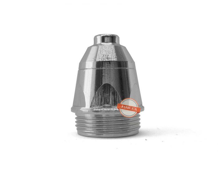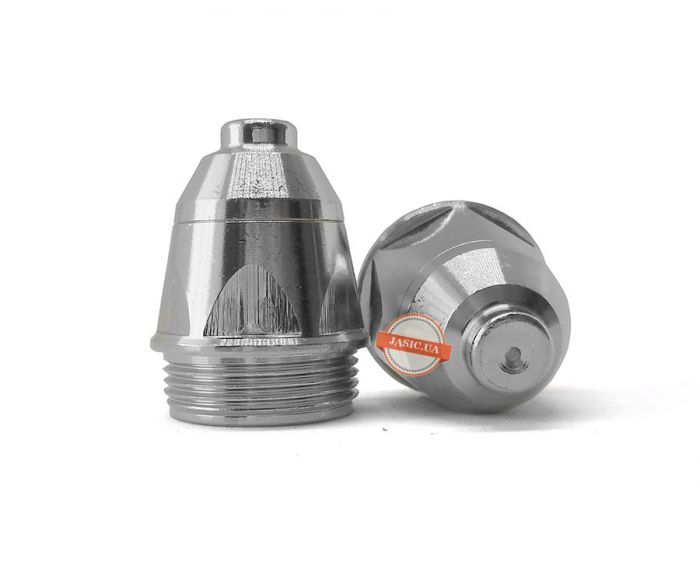 Сопло к плазмотрону - это расходный компонент, который по мере износа заменяется. Изготавливают сопла методом холодной штамповки из медного сплава или из комбинации меди и керамического наполнителя. Подбирают сопло в зависимости от тока резки, визуально за это отвечает диаметр выходного отверстия, чем больше ток резки – тем больше диаметр. Правильный диаметр и геометрия отверстия - залог качественной резки. Изношенное устье сопла или сопло с несоответствующим диаметром устья приводят к отклонениям дуги и, как результат, к снижению качества резки.